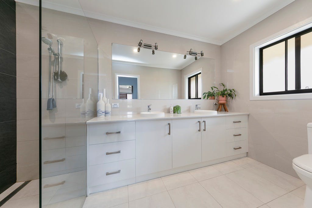 The private master bedroom is private space with a walk through his and hers robes and a beautiful ensuite bathroom. The additional three bedrooms are serviced by a large three-way family bathroom and well-appointed family size laundry. Bedrooms two and three also have built in robes.